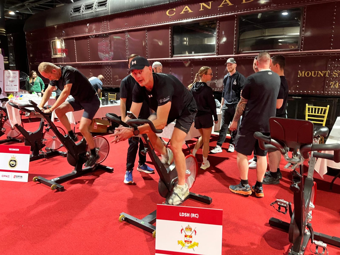 Over this past weekend, members of LdSH(RC) participated in CPKC’s annual Spin for a Veteran Fundraiser in Calgary. Teams across Canada, the United-States, and Mexico biked for 12 hours last Saturday raising money to support homeless veterans. Over the course of the day, 10 members from the regiment biked around 380km and helped the Homes for Heroes Foundation raise over $600 000! We would like to thank everyone for their support and to all those who donated in this years fundraiser. Until next year!