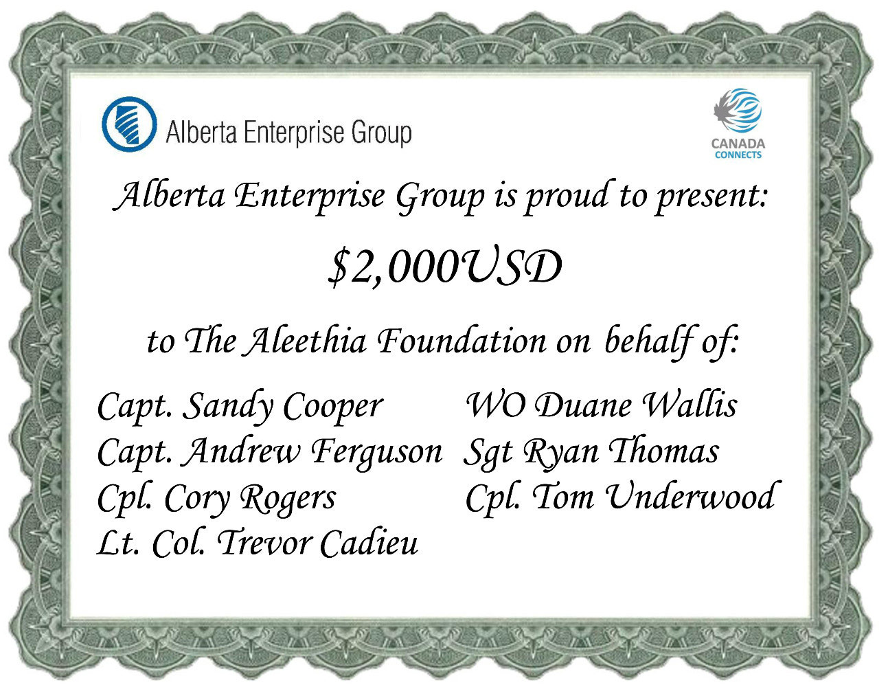 Overall, the mission was a great success, and a heartfelt thanks goes out to Mr. Cal Nichols, Chairman AEG, and Mr. Tim Shipton, President AEG, along with the other outstanding corporate sponsors.