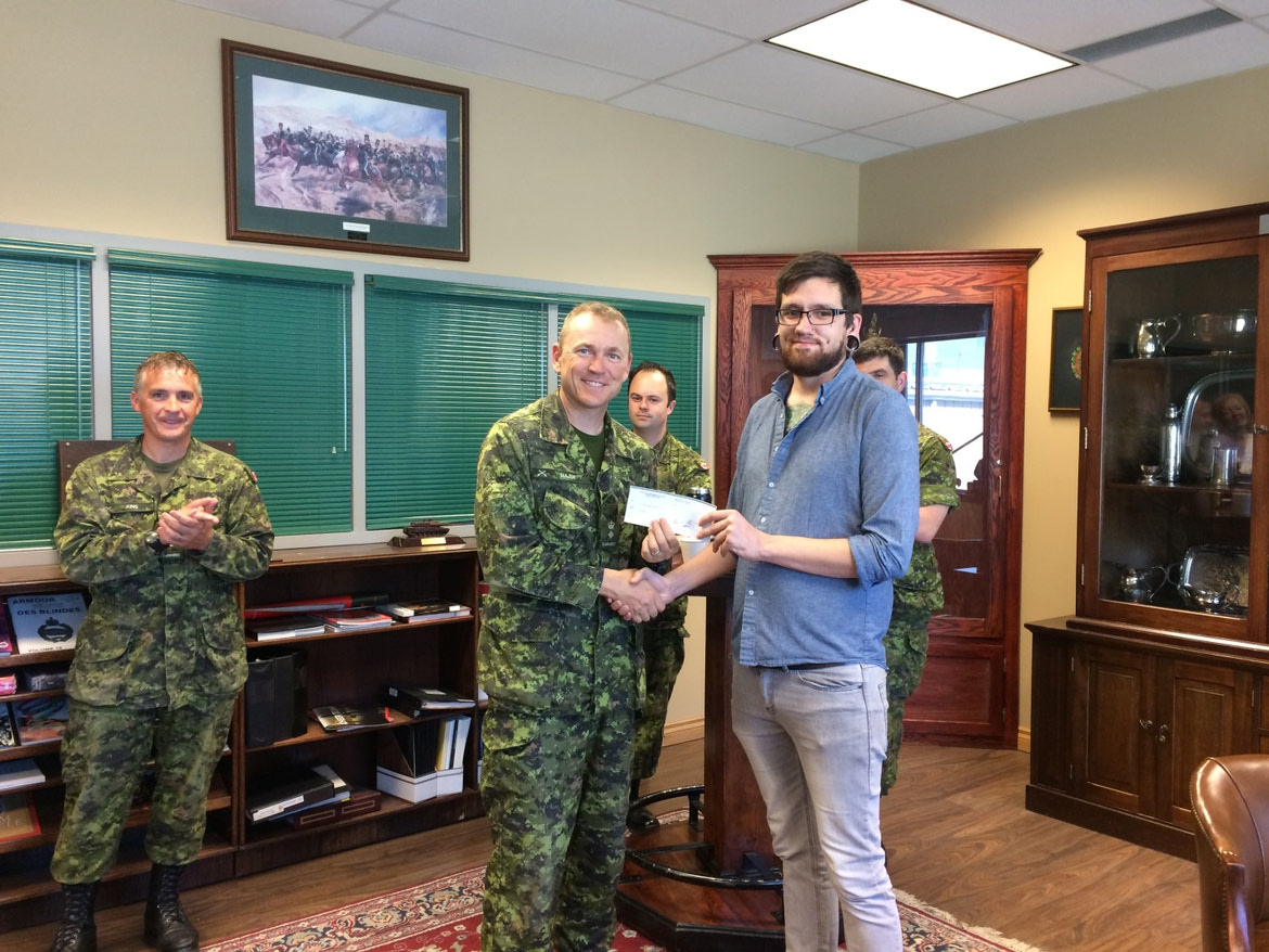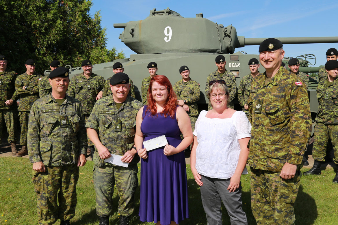 It is a great honour to congratulate the three recipients of this year’s scholarship. Mr. Travis Taylor received $2,000 from our Commanding Officer, Lieutenant-Colonel Josh Major at the Mariner Room in the presence of numerous Regimental Officers and Non-Commissioned Officers. Ms. Aleisha Colson and Ms. Michaela Woodrow accepted their $3,000 and $5,000 cheque from Major Jamie Hunter and Master Warrant Officer Tom Holland at the Combat Training Centre in Gagetown, New Brunswick.